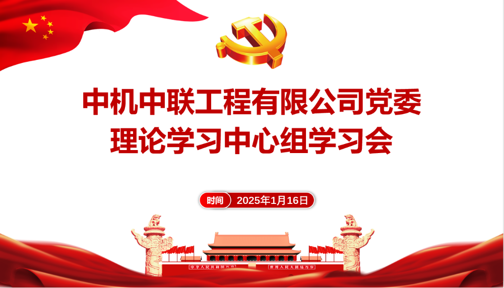 黨建工作 首頁>黨建工作 中機中聯召開2025年度基層黨支部書記述職評議會 12月13日,中機中聯召開2025年度基層黨支部書記述職評議會。公司黨委書記、董事長... 2025-12-15more → 中機中聯黨委召開2025年理論學習中心組會(八) 11月17日,中機中聯黨委召開2025年第八次理論學習中心組學習會,深入學習貫徹黨的... 2025-11-24more → 中機中聯黨委召開2025年理論學習中心組暨調研成果交流會 10月25日,中機中聯召開2025年第七次黨委理論學習中心組暨調研成果交流會,深入學... 2025-10-29more → 中機中聯舉辦2025年基層黨務工作者履職能力提升專題培訓暨新任黨支部書記任職培訓班 為深入學習貫徹習近平新時代中國特色社會主義思想,持續鞏固提升學習貫徹中央八項... 2025-10-13more → 中機中聯黨委召開2025年理論學習中心組會(六) 7月26日,中機中聯召開2025年第六次黨委理論學習中心組學習,深入學習領會習近平文... 2025-07-29more → 中機中聯黨委召開2025年理論學習中心組會(五) 6月26日,中機中聯黨委召開2025年第五次黨委中心組學習,深入學習領會習近平經濟思... 2025-07-03more → 中機中聯黨委召開2025年理論學習中心組學習會(四) 5月26日,中機中聯黨委召開2025年第四次黨委中心組學習暨深入貫徹中央八項規定精神... 2025-05-30more → 中機中聯黨委召開2025年理論學習中心組學習會(三) 5月12日, 中機中聯黨委召開2025年理論學習中心組學習會。會議在前期領導班子成員... 2025-05-14more → 中機中聯黨委召開2025年理論學習中心組(擴大)學習會(二) 4月22日, 中機中聯黨委召開2025年理論學習中心組(擴大)學習會,深入學習貫徹全... 2025-04-24more → 中機中聯召開2024年度領導班子民主生活會暨巡視整改專題民主生活會 2月21日,中機中聯黨委召開2024年度領導班子民主生活會暨巡視整改專題民主生活會。... 2025-02-21more → 中機中聯召開2024年度班子成員抓黨建述職評議會 為深入學習貫徹習近平新時代中國特色社會主義思想和黨的二十屆三中全會精神,進一... 2025-01-19more → 中機中聯黨委召開2025年理論學習中心組學習會(一) 1月16日,中機中聯黨委召開2025年理論學習中心組學習會,深入開展2024年度民主生活... 2025-01-16more → 中機中聯黨委召開理論學習中心組(擴大)學習會(九) 12月26日,中機中聯黨委召開理論學習中心組(擴大)會,專題學習貫徹中央經濟工作... 2024-12-26more → 中機中聯召開2024年度基層黨支部書記述職考評會 為深入學習貫徹習近平新時代中國特色社會主義思想,深入貫徹落實黨的二十屆三中全... 2024-12-14more → 中機中聯召開黨委理論學習中心組學習會暨班子成員調研成果交流會 12月4日,中機中聯黨委召開理論學習中心組學習會暨班子成員調研成果交流會,持續深... 2024-12-04more → 中機中聯黨委召開理論學習中心組(擴大)學習會(七) 10月23日,中機中聯黨委召開理論學習中心組(擴大)會,專題學習貫徹習近平總書記... 2024-10-23more → 中機中聯黨委召開理論學習中心組(擴大)學習會(六) 9月26日,中機中聯黨委召開理論學習中心組(擴大)會專題學習貫徹習近平總書記關于... 2024-09-26more → 國機集團黨委工作部到中機中聯調研指導 9月10日,國機集團黨委工作部張翼副處長一行到中機中聯調研指導。公司黨委書記、董... 2024-09-10more → 中機中聯召開黨委理論學習中心組(擴大)學習會(五) 8月2日,中機中聯黨委召開理論學習中心組(擴大)學習會,專題學習黨的二十屆三中... 2024-08-02more → 中機中聯召開黨委理論學習中心組(擴大)學習會(四) 6月27日,中機中聯黨委召開理論學習中心組(擴大)學習會,專題學習習近平總書記關... 2024-06-27more → 中機中聯召開警示教育大會 6月13日,中機中聯召開警示教育大會。會議傳達學習了習近平總書記關于全面加強黨的... 2024-06-13more → 中機中聯召開黨委理論學習中心組(擴大)學習會(三) 6月13日,中機中聯黨委召開理論學習中心組(擴大)學習會,專題學習習近平總書記關... 2024-06-13more → 中機中聯黨委召開黨紀學習教育讀書班暨集中學習會 5月14日,中機中聯黨委召開黨紀學習教育讀書班暨集中學習會。公司黨委書記、董事長... 2024-05-14more → 中機中聯黨委召開理論學習中心組(擴大)學習會(二) 5月6日,中機中聯黨委召開理論學習中心組(擴大)會,專題學習新修訂的《中國共產... 2024-05-06more →