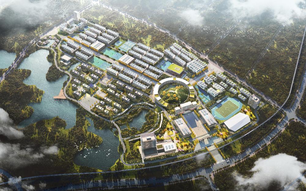 該項目南側毗鄰林家巖水庫,周邊環境基底優良,中機中聯項目團隊結合校園的功能需求提煉出“一環三軸”的規劃結構,形成“塘上林園,共享云環”的校園空間特色。項目落地過程中將秉承“精益求精、至善至美”的管理方針,將其打造為一座具有現代職業教育特色的校園。