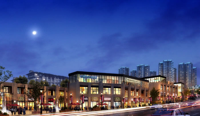 總平面布置將該中心片區分為商業和居住兩大功能。具體劃分為8#地塊主要有高層住區、洋房區和商業建筑;9#地塊布置有洋房區,低層住宅小區。另外,8#地塊布置有幼兒園。其中高層住宅區布置在8#地塊東側,緊鄰東面市政綠地,洋房區布置在悅山路兩側,低層住宅小區布置在地塊西面,緊鄰會展公園。