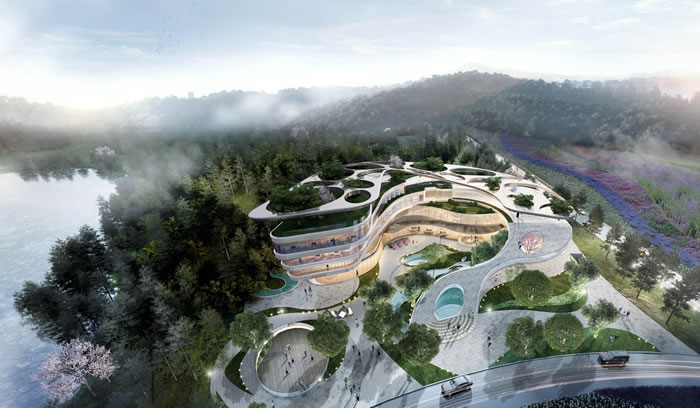 項目特色及難點:“瓏”其古玉也,古時候求雨的龍形玉佩。“花臨瓏”寓意花海之中的龍形美玉,以“花臨瓏”命名酒店,因酒店面朝“花海”,春暖花開,尊重自然又充滿詩情畫意。