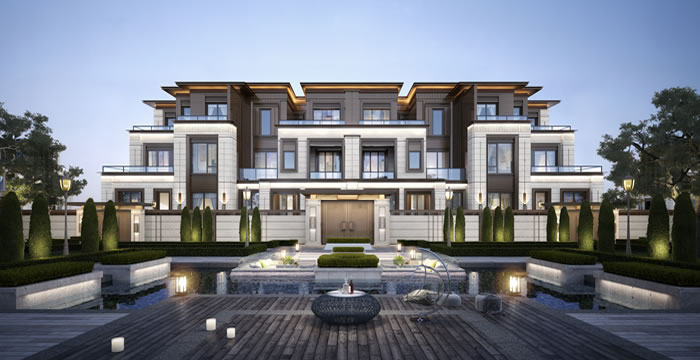 2.通過BIM精細化設計對疊拼和聯排別墅的外立面進行建模分析,充分表達了立面造型和線條的細節,并復核出機電管線對立面效果的影響,從而提出優化建議供業主方參考以便做出修改決策。